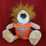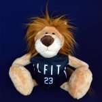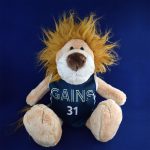 チームユニフォームを着たライオン君プレゼント